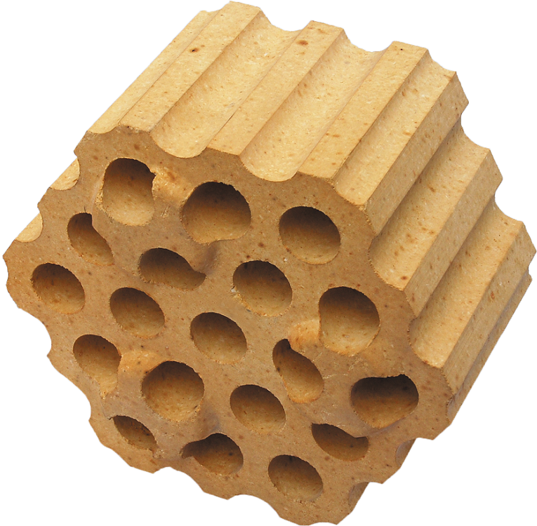 粘土質(zhì)格子磚是目前被世界煉鐵界廣泛認(rèn)同和接受的一種熱交換能力強(qiáng)、蓄熱面積大、通氣順暢、阻力小等諸多優(yōu)越熱工特性的載熱蓄熱體。格子磚是一種傳熱介質(zhì),應(yīng)用在高爐熱風(fēng)爐蓄熱室里。