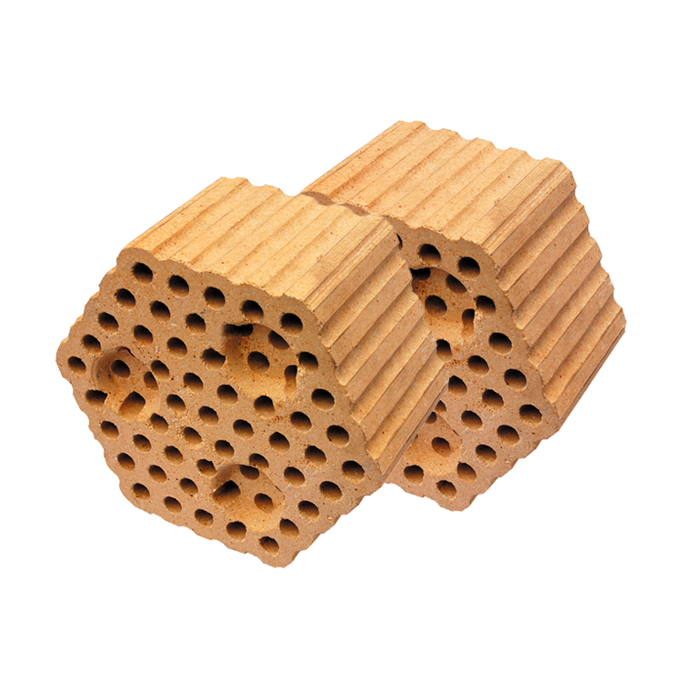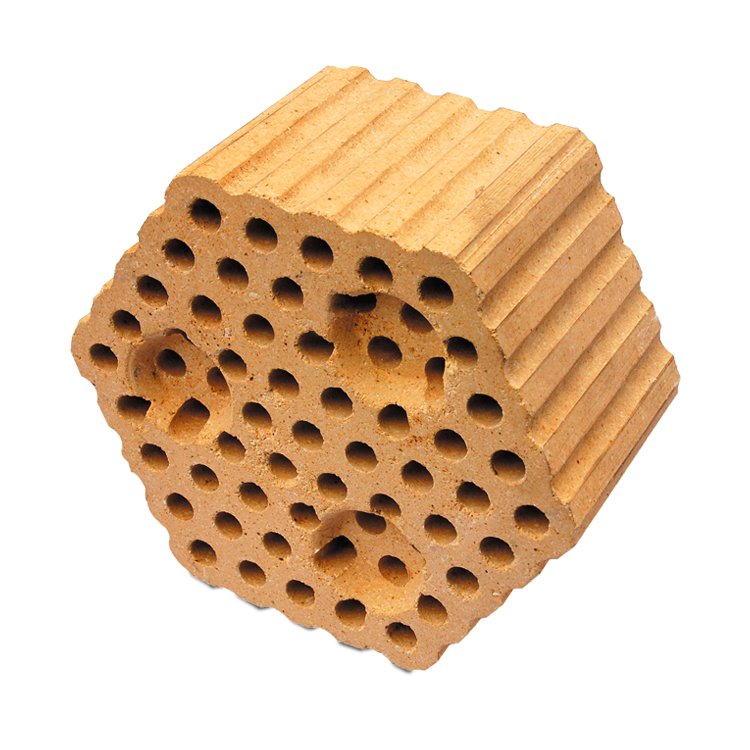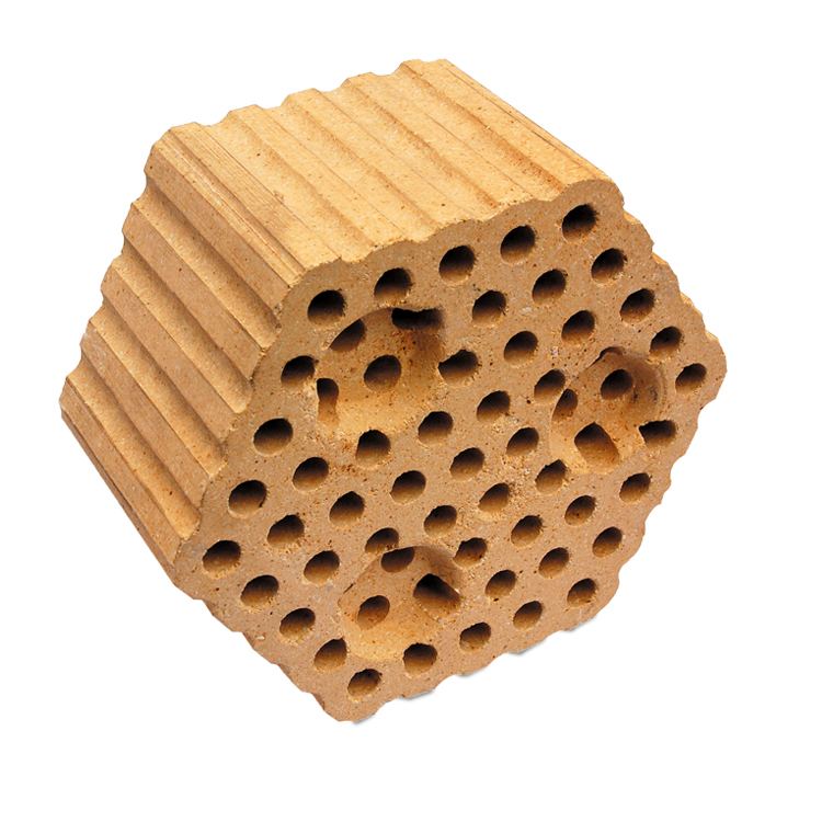 格子磚主要用在熱風(fēng)爐的蓄熱室里,由結(jié)構(gòu)一定的帶格孔的格子磚有序排列,格子磚上下通孔可任由氣體通過。根據(jù)不同溫度區(qū)域的技術(shù)要求,一般選用硅質(zhì)格子磚、粘土磚等,在一些熱風(fēng)爐里,也有選擇高鋁磚、莫來石磚、硅線石磚等。